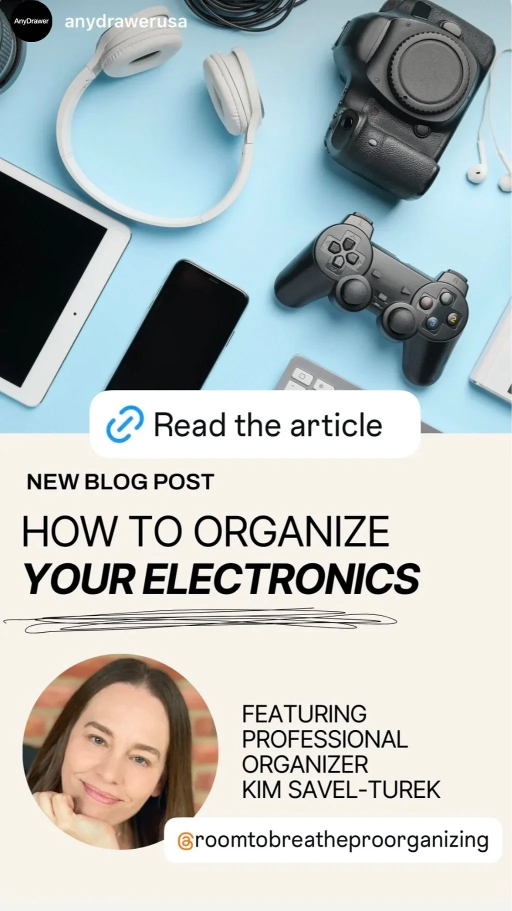 I was recently invited to be a guest contributor for AnyDrawer, a blog that celebrates functional, beautiful spaces and practical organizing strategies. In the article, I share simple, real-world tips for decluttering and organizing electronics—from wrangling cords to creating storage systems that keep gadgets accessible (without the mess).